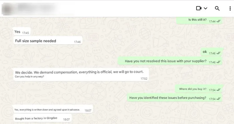Vi fick nyligen veta att en kund stötte på allvarliga problem med en presenningsbeställning från en konkurrent. De lockades av ett lågt pris, och fabriken tog slutligen två månader att slutföra produktionen. Vid leverans upptäckte de att produkten var slut i lager och inte i den storlek de ursprungligen hade kommit överens om. Kunden överväger just nu rättsliga åtgärder. Nedan är en utskrift av min kommunikation med denna kund.
